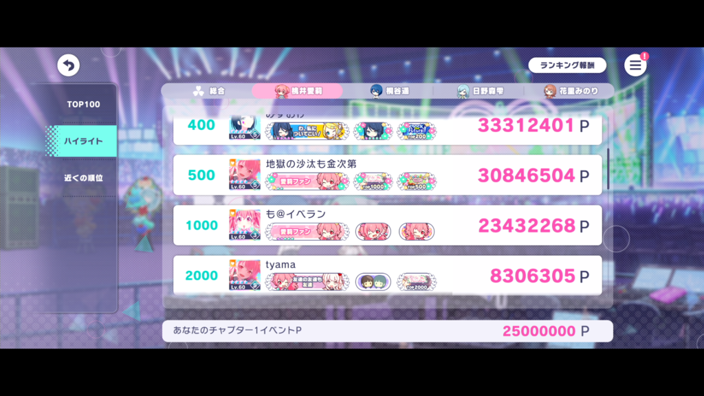 ひとまず愛梨は終了3時間前に安全圏でポイント調整完了!高みの見物でした。
