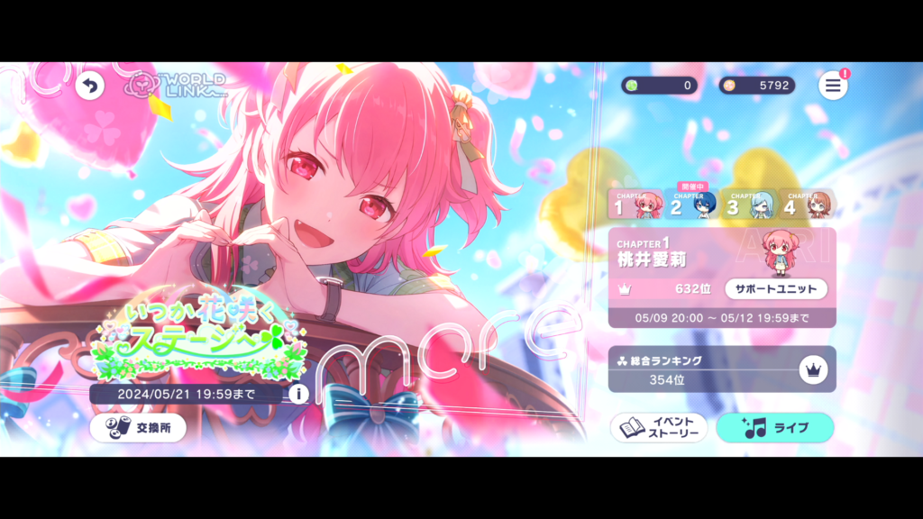 今日はやはりプロセカワールドリンクイベントchapter1 愛梨最終日&chapter2 遥開始日でした。