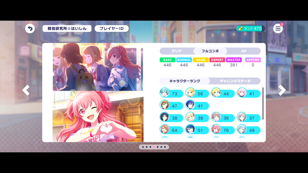 まだイベントは終わっていませんが、キャラ取得はすでに済んでいます。楽曲クリアも下埋めは問題なくできています。expertは思ったよりも進められてません。他ゲーを優先していることもありますが、、、