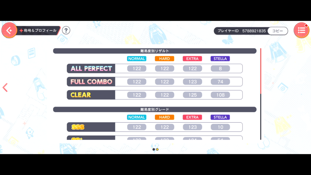 イベント終わっていませんが交換所のアイテムはほぼ完遂。下埋めも順当ですが、Long ver.が恒常で追加されてクリア楽曲数に含まれるようになりました。それでまだLong ver.は全然やっていないのでクリア楽曲数がずれた感じになっています。Long ver.もやらないといけないなー…
