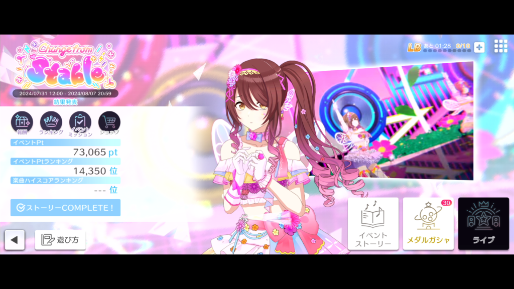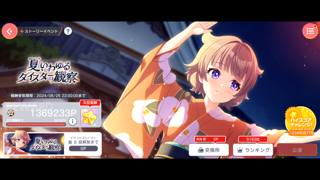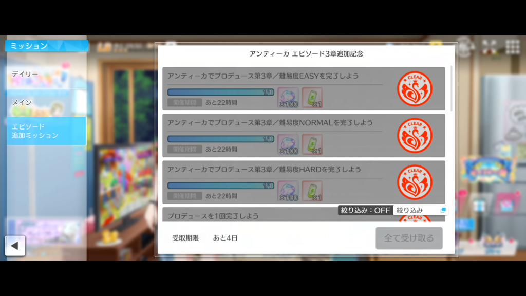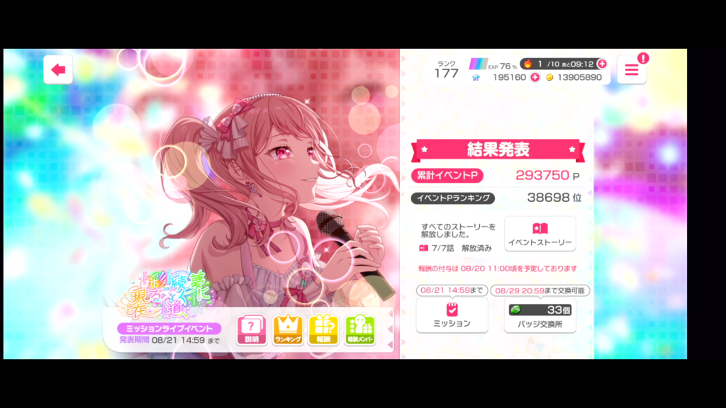 イベント期限内にイベント曲をし忘れることを除いて、しっかりやれました。エピソード記念ミッションもばっちりですね。