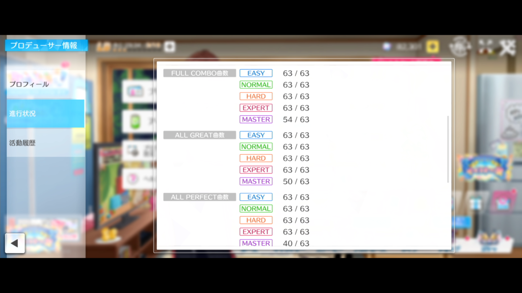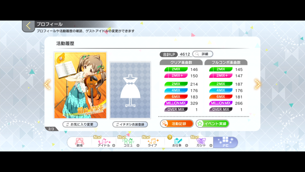 まずは各ゲームのイベント結果、楽曲クリア状況をどうぞ。