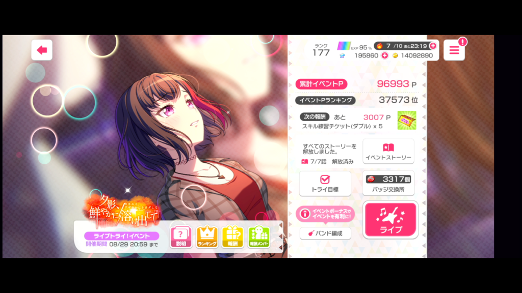 ガルパのイベントもちょこちょことやっています。もちろん最低限のキャラ取得は済んでいます。