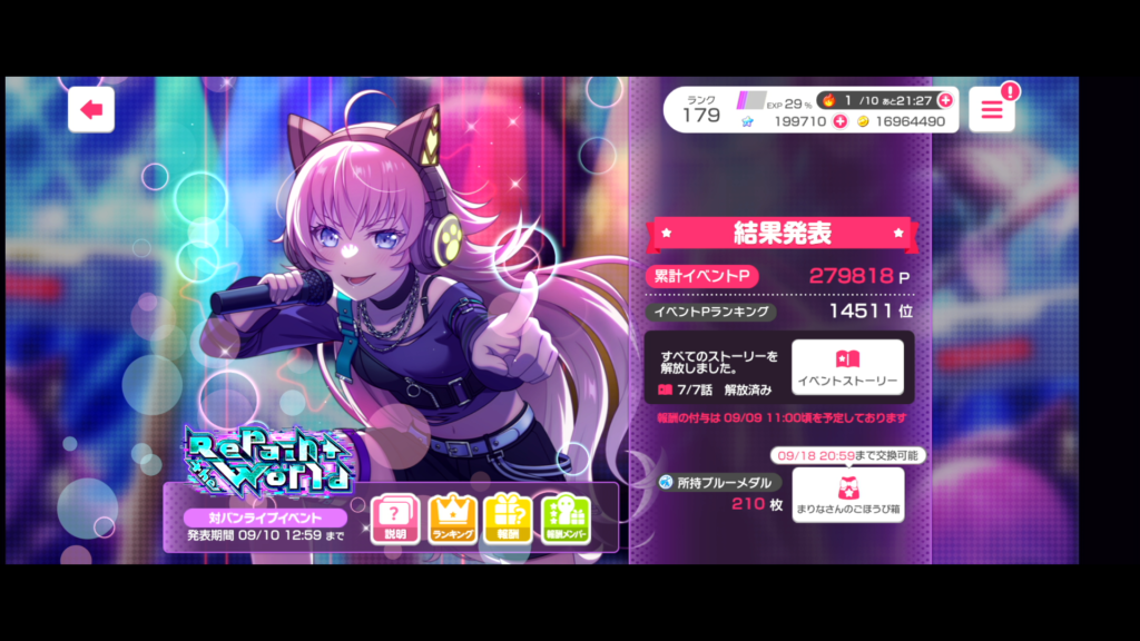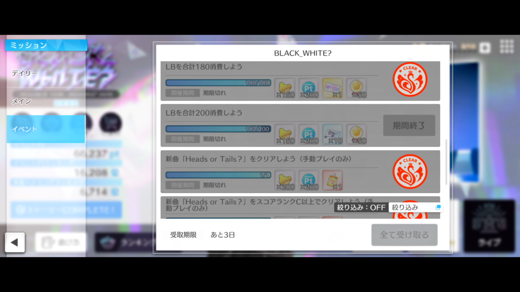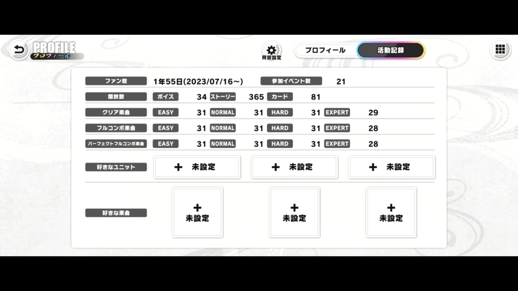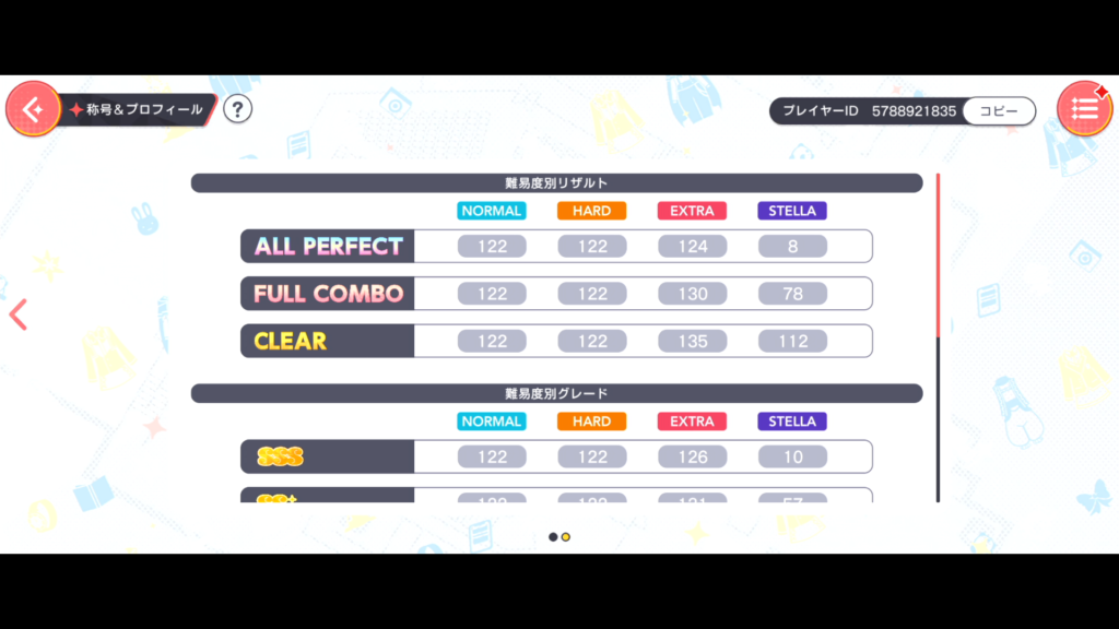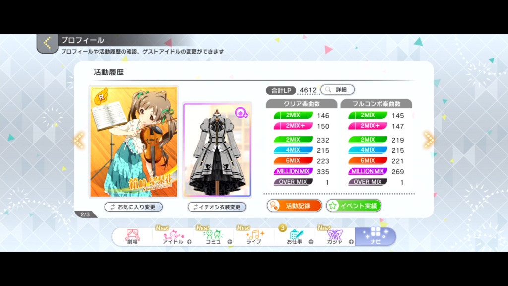 まずは各ゲームのイベント結果、楽曲クリア状況をどうぞ。